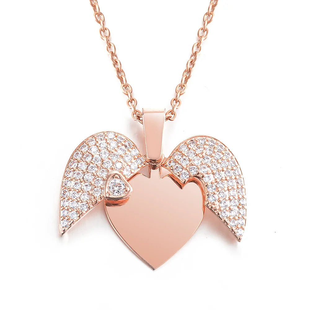 Personalized Heart Wings - Rose gold 1 / Engrave QR